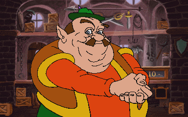 He’s wearing a blue-gray shirt with a brown-green cloak